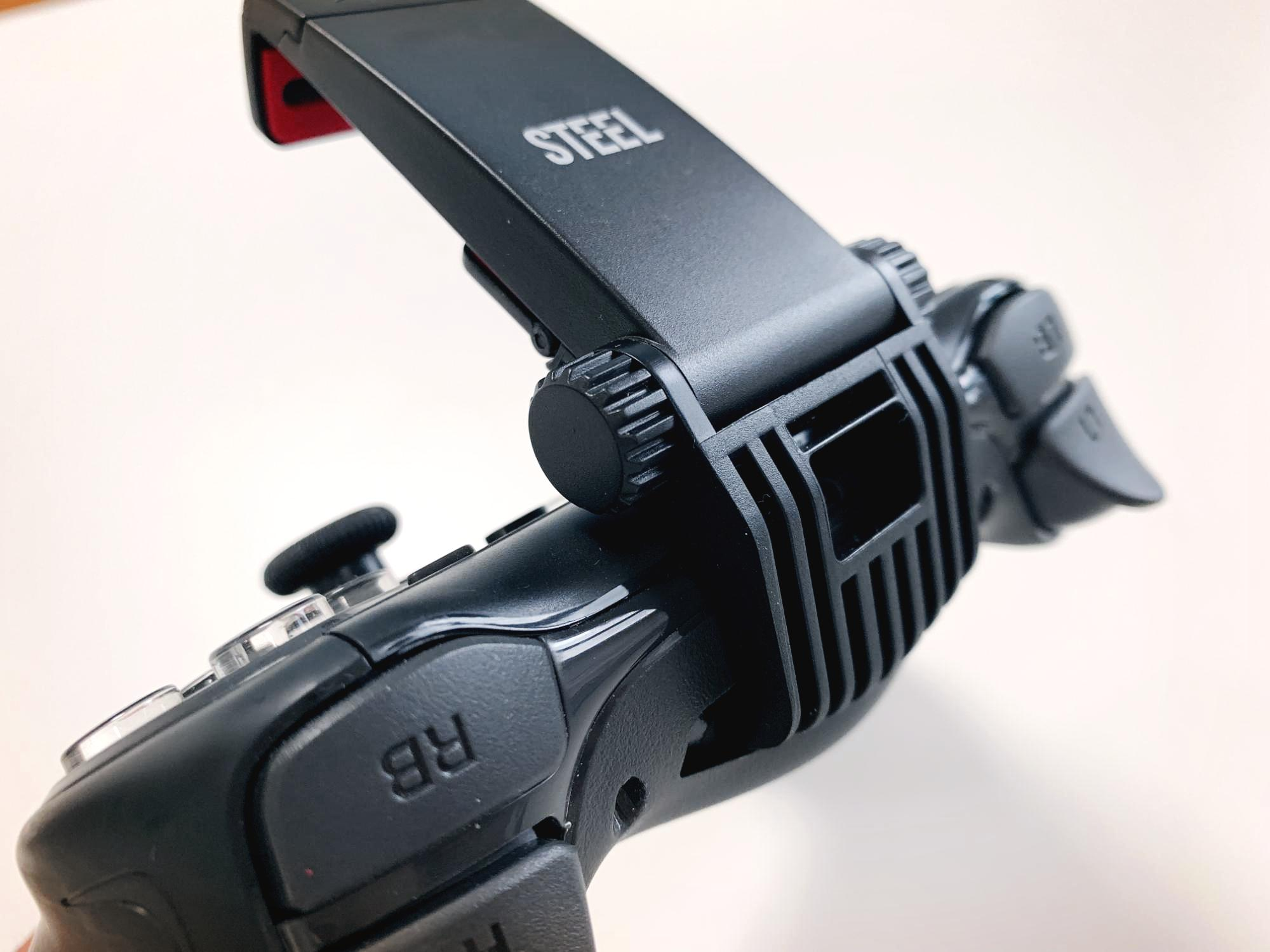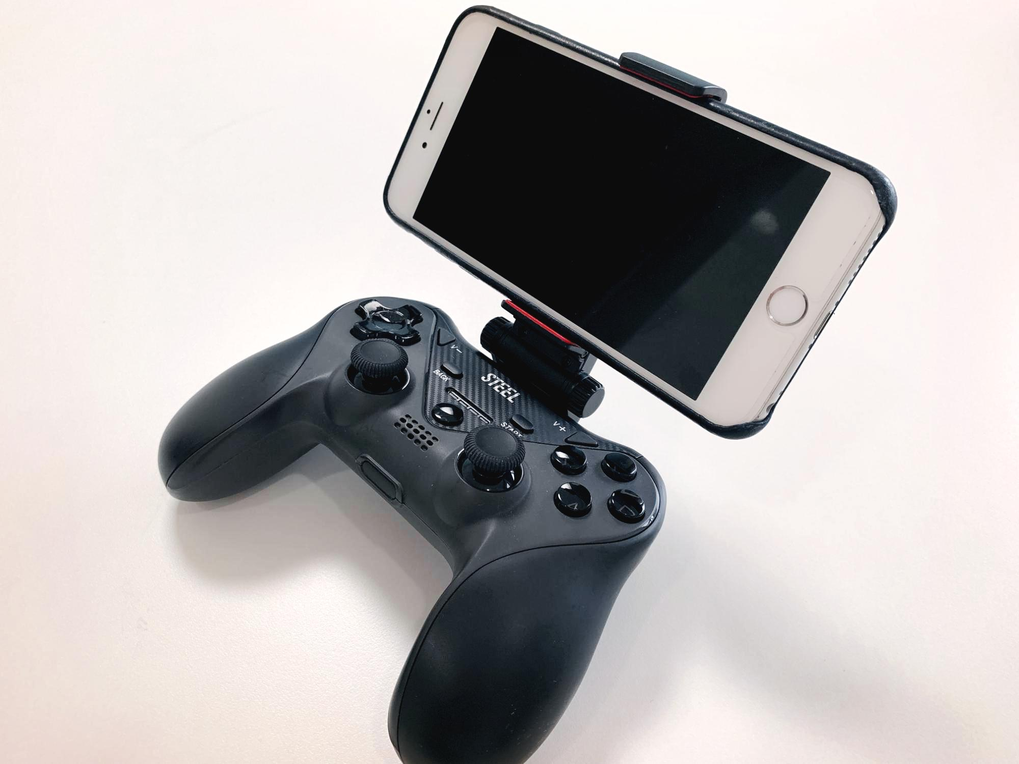 제품을 개봉하면 게임패드 본체와 스마트폰 연결 거치대 그리고 충전용 케이블이 들어있다. 별도의 충전용 어댑터는 없고 USB 연결이 가능한 스마트폰 충전기나 기타 기기들에 연결해서 충전할 수 있는 구조이다. 특이한 것이 스마트폰 연결 거치대로 사용하지 않을때는 빼서 깔끔할을 유지할 수 있고, 사용할 때만 장착해서 쓰면 된다는 것이다. 개인저긍로는 아이패드 연결을 선호하기 때문에 거치대를 쓰는 일은 많지 않았다. 아이패드는 불가능 하더라도 거치에대서 아이폰 XS 맥스도 보호 케이스를 장착한 상태로 거치가 가능하니 시중에 나와있는 왠만한 스마트폰은 모두 거치가 가능하다고 봐도 무방할 것 같다.
