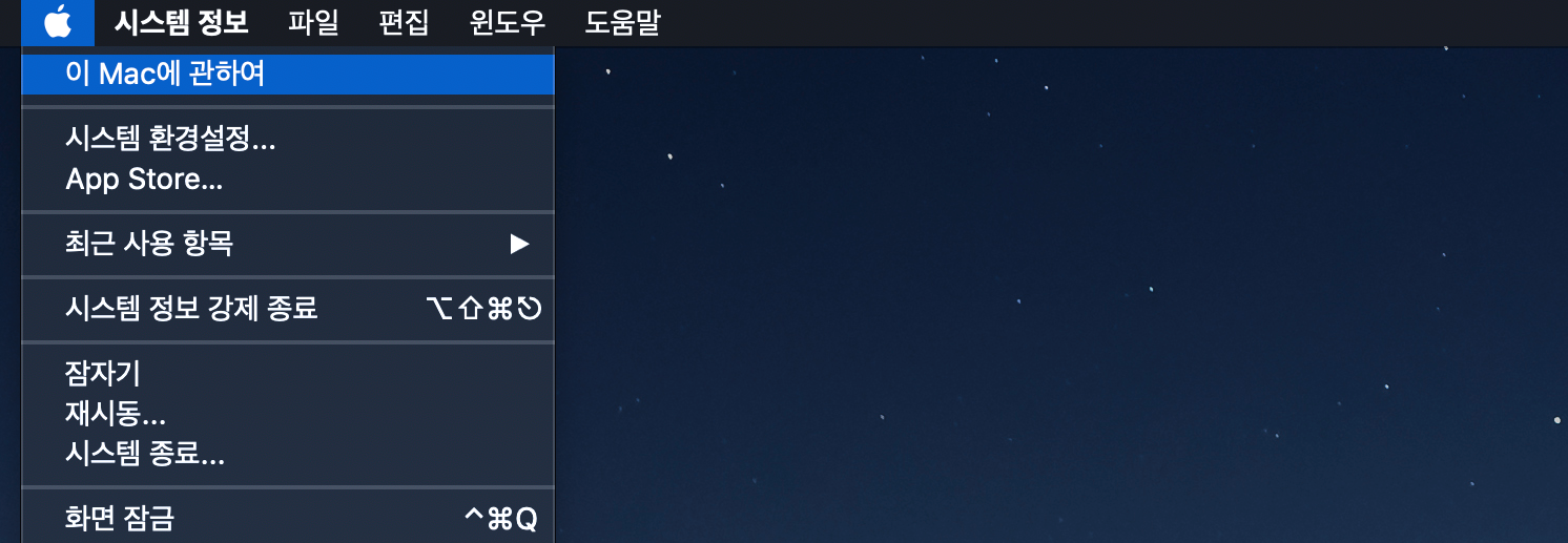 맥용 컴퓨터의 메모리 제조사를 확인하는 방법은 메우 간단하다. 우선 맥OS 좌측 상단의 사과마크를 클릭한다. 이후 펼쳐지는 메뉴에서 '이 Mac에 관하여'라는 것을 선택하면 간단한 컴퓨터의 상태를 확인할 수 있는 창이 뜬다. 이 창에서 하단 좌측에 있는 시스템 리포트 버튼을 클릭해 주도록 하자.