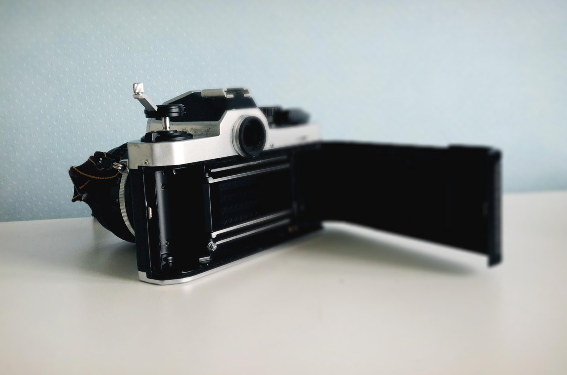 그럼 궁금했던 내부를 보자. 내부는 후면 커버를 열어야 볼 수 있는데, 카메라 좌측의 레버를 아래로 내리면 툭 하고 열린다. 이는 지금 보면 매우 당연하지만 당시에는 엄청나게 쉬운 방식이었다. 다음에 소개할 니콘의 FM2와 비교하면 얼마나 쉬운 것인지를 알 수 있다. 내부에는 필름을 장착하고 첫 부분을 끼워주기면 하면 자동으로 감아주는 모터가 존재한다. 물론 보터가 외부로 드러나 보이지는 않지만 매우 편한 기능이라고 할 수 있다. 필름을 끝까지 사용하면 자동으로 감아주는데 이 부분이 가장 매력적이었다고 생각한다.