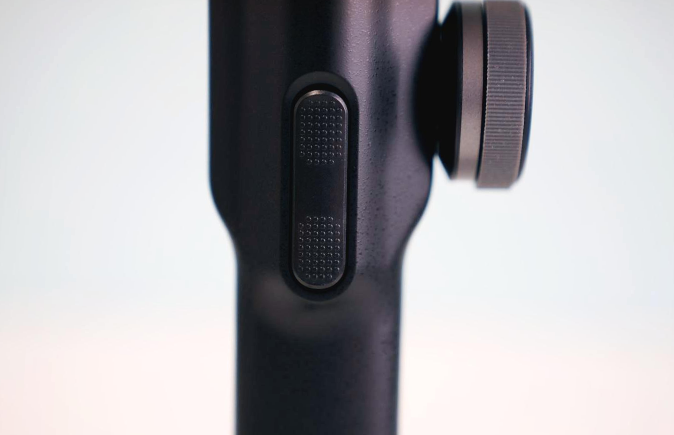 다음은 왼쪽 측면에 달려있는 커다란 다이얼 부분이다. 이 다이얼의 역할은 화면의 확대/축소를 매우 부드럽게 조절하는 부분이다. 다른 버튼부도 마찬가지이지만 스마트폰 짐벌을 사용하면서 직접 스마트폰을 만지만 부드러운 화면을 만들 수 없기 때문에 모든 기능은 스마트폰 짐벌의 조작부로 할 수 있도록 제작되어 있다. 이 다이얼 부분도 그 중 하나로, 화면의 확대 혹은 축소를 위해 스마트폰 화면에 두 손가락을 대고 벌렸다 오므렸다 하는 방법 대신에 이 다이얼을 돌리면서 확대와 축소를 가능하게 한 것이다. 이 다이얼을 사용할 경우 단순히 부드러운 움직임을 가져가는 것 뿐만 아니라 확대/축소를 하는데 있으서 아주 미세한 조정도 가능하다는 장점이 있다.
