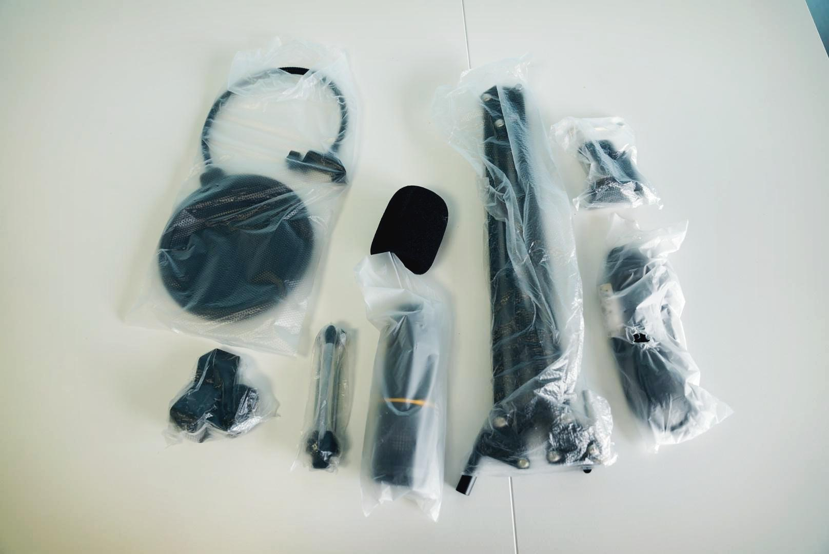 마이크는 두 가지 색상이 있었는데 골드와 블랙이다. 어차피 마이크의 사운드 입력부는 검은색 스펀지로 감싸기 때문에 어떤 의미가 있을지 모르겠지만 일단 그러한 옵션이 있다는 것 정도로 생각해 두자. 다음으로 조립시 결정해야 할 부분이 있다. 바로 책상위에 스탠드처럼 거치를 할 것인지 아니면 미니 삼각대를 사용할지 이다. 이 부분에 있어서 매우 많은 고민을 했지만 결국 필터를 사용하기 위해서는 스탠드식 거치가 필요하기 때문에 조립을 결정하기로 했다. 스탠드의 다리는 얼마전 구입한 이케아의 스탠드와 정말 유사하게 되어있어서 조립에 어려움은 없었다. 다만 마이크를 연결하는 집게가 생각보다 조이는 능력이 좋지 못해서 방향에 따라 쉽게 마이크를 떨구기도 하므로 이는 설치시 주의가 필요한 부분이다.