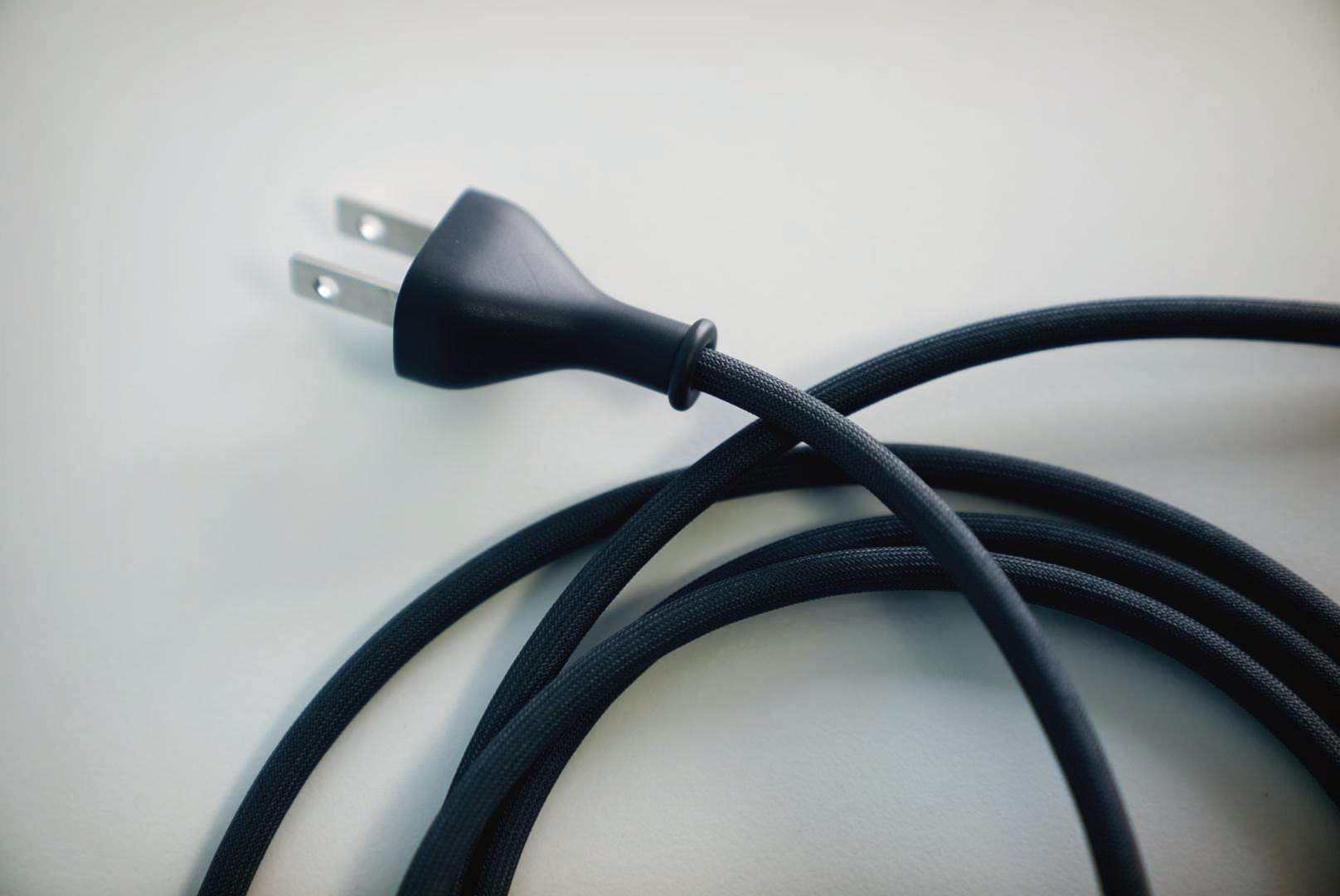 전원이 넣기 전까지는 할 말이 많지 않으므로 이 케이블에 대해서 좀 더 상세하게 살펴보자. 단순히 케이블이 일체형으로 디자인 되어있다는 것 이외에 특징적인 점이 하나 있는데 바로 꼬임방지 선이라는 것이다. 굵기가 이어폰 선 처럼 얇은 것이 아니라 꼬일일이 많지는 않을 것 같지만 이어폰에 주로 적용되는 꼬임방지 재질이 적용되어 있다. 오히려 기존의 하얀색 케이블의 경우 오래 사용하다보면 거의 회색이 되다싶이 하는 경우가 많은데, 다행히 홈팟의 경우 이런 것을 걱정하지 않아도 될 것 같은 느낌이다. 그리고 끝부분은 당연히 110V 케이블로 미국에서 구입해서 그런지 다른 규격의 콘센트는 제공되지 않았다. 이 케이블을 처음 봤을때 냉장고나 세탁기와 같은 가전이 생각났는데, 곰곰히 생각해보면 홈팟은 기존의 아이폰이나 아이패드, 맥북과 같은 디지털 기기이긴 하지만 이름에서도 알 수 있듯 가전에 더 가깝게 만들어 졌기 때문에 이러한 케이블 구성도 나름 이유가 되지 않을까 하는 생각도 들었다.
