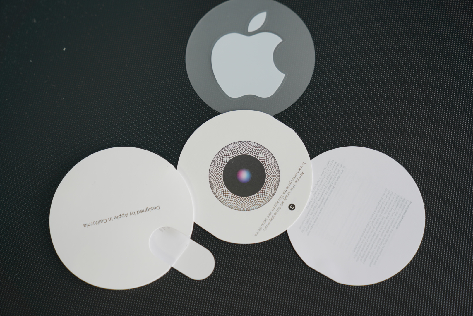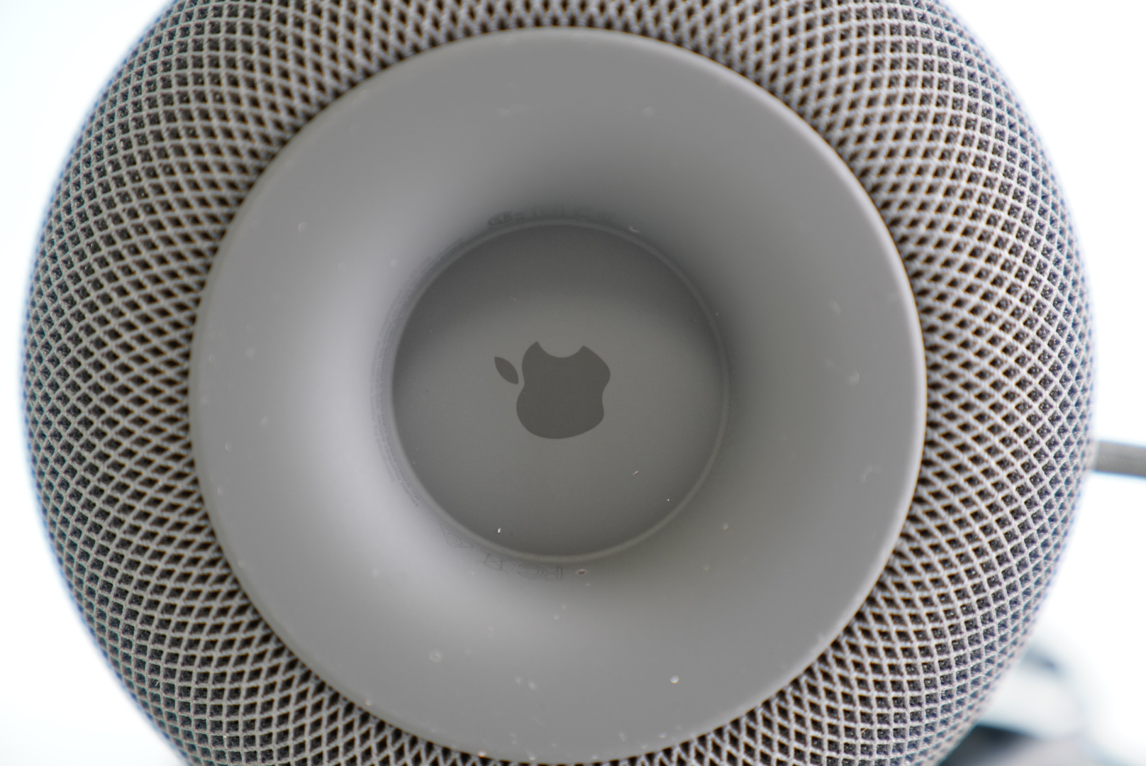 전원을 넣기 위한 시간이 하루가 걸렸기 때문에 덕분에 제품을 꼼꼼하게 살펴볼 수 있는 시간이 있었다. 가장 눈에 들어오는 점은 코득 일체형이라는 점만은 아니었다. 어떠한 물리적인 버튼이 존재하지 않는 것도 특징이다. 상단의 디스플레이가 표시된 패널이 있기는 하지만 전원을 넣기 전에는 아무것도 할 수가 없다. 우선 그런 패널이 존재한다는 것만 알아두자. 그리고 하단은 홈이 파여져 있다. 사실 사용하면서 뒤집어 볼 일이 없기 때문에 언박싱 때에만 볼 것 같은 부분이긴 하지만 이 곳에도 빠짐없이 애플 마크가 새겨져 있다. 그리고 본체의 좌우는 어디가 앞이고 뒤라고 할 수 없을 정도로 그냥 동그랗게 되어있다. 전원이 연결된 부분만 없다면 360도 어디가 앞이라도 우겨도 할 말이 없는 디자인 이지만 이 케이블 연결부 덕분에 뒤는 확실히 구분할 수 있게 되었다.