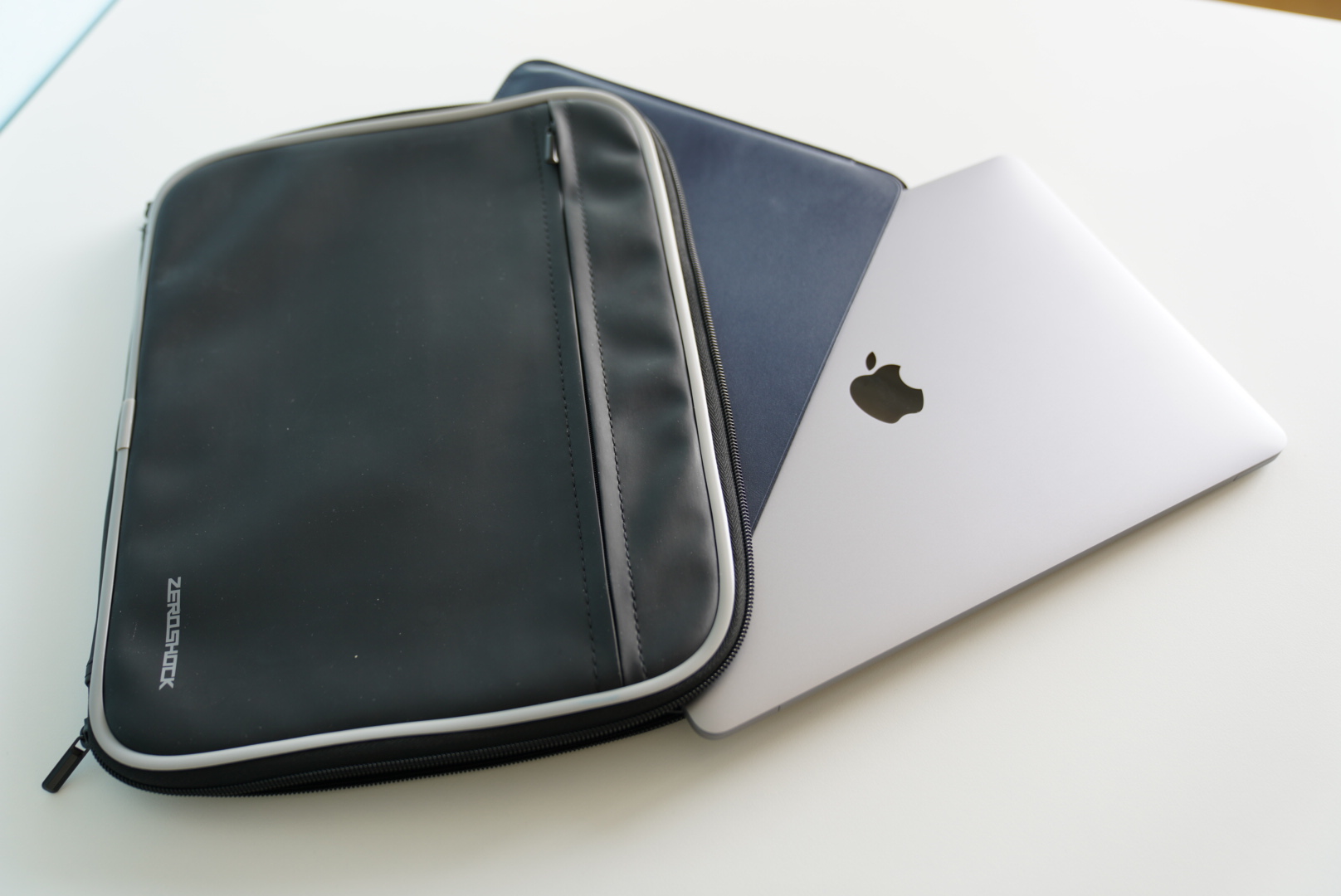 다음은 일상생활 이상의 충격을 받을 위험이 있는 경우에 사용하는 액세서리이다. 일상생활 이상의 충격이 뭐가 있을까 싶지만 출장이나 여행을 가는 경우라고 생각하면 될 것 같다. 특히 비행기를 이용할 경우가 그러한데 보안 검색대를 통과할 때 노트북은 잠시 나의 손을 떠나게 되기 때문에 특히나 충격보호가 신경이 쓰인다. 간혹 이 케이스마저 벗겨지는 경우가 있는데 그것은 불가항력이기 때문에 어쩔 수 없는 부분이긴 하다. 다시 액세서리의 이야기로 돌아와서 제로쇼크 제품은 네이밍에서 알 수 있듯이 충격 흢수를 목적을 만들어진 노트북 파우치이다. 필자의 경우 꽤나 오래전 부터 다양한 크기의 제로쇼크 제품을 사용했는데 매우 만족스러웠기 때문에 꾸준히 사용하고 있다. 위의 애플 정품 액세서리 보다 가격적인 면은 매우 저렴하다. 13인치 노트북용의 경우 인터넷 오픈 마켓에서 약 3만 원대에 구입할 수 있다. 이 제품은 핵심은 내부인데 노트북과 맞닿는 면에 올록볼록한 엠보싱 처리가 되어있으며 이 엠보싱은 메모리폼으로 제작되어 있다. 이 메모리폼을 가장 흔하게 볼 수 있는 것이 베개인데 쿡 누르면 쑥 들어갔다가 아주 천천히 원상복구되는 소재이다. 갑작스러운 충격에 매우 효과가 있는 소재이다.